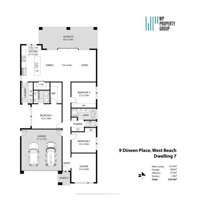Between 216m2 & 234m2 house size on one level.