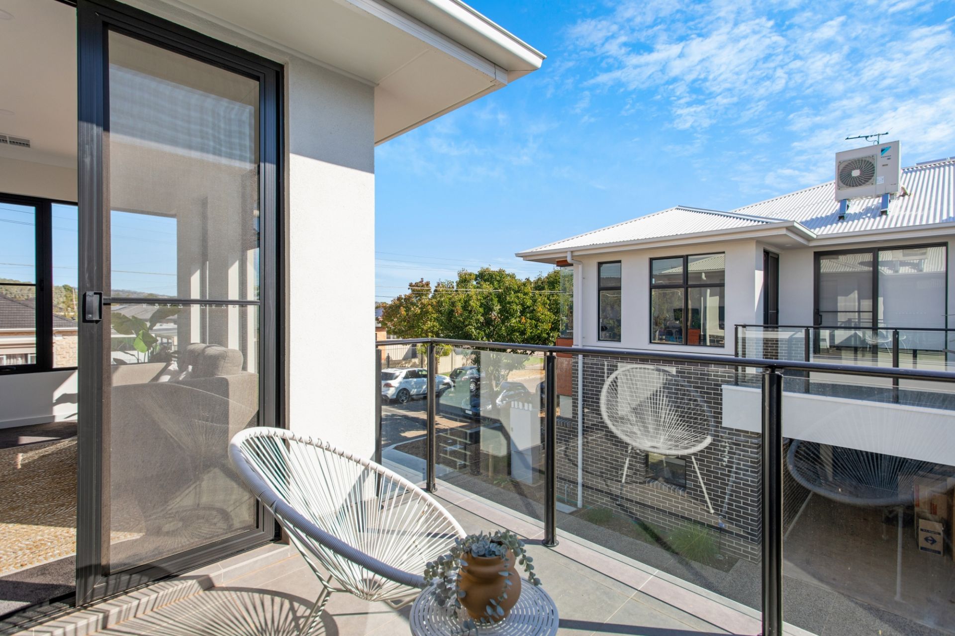 - Main bedroom and the upper level living room both open out to the large private balcony