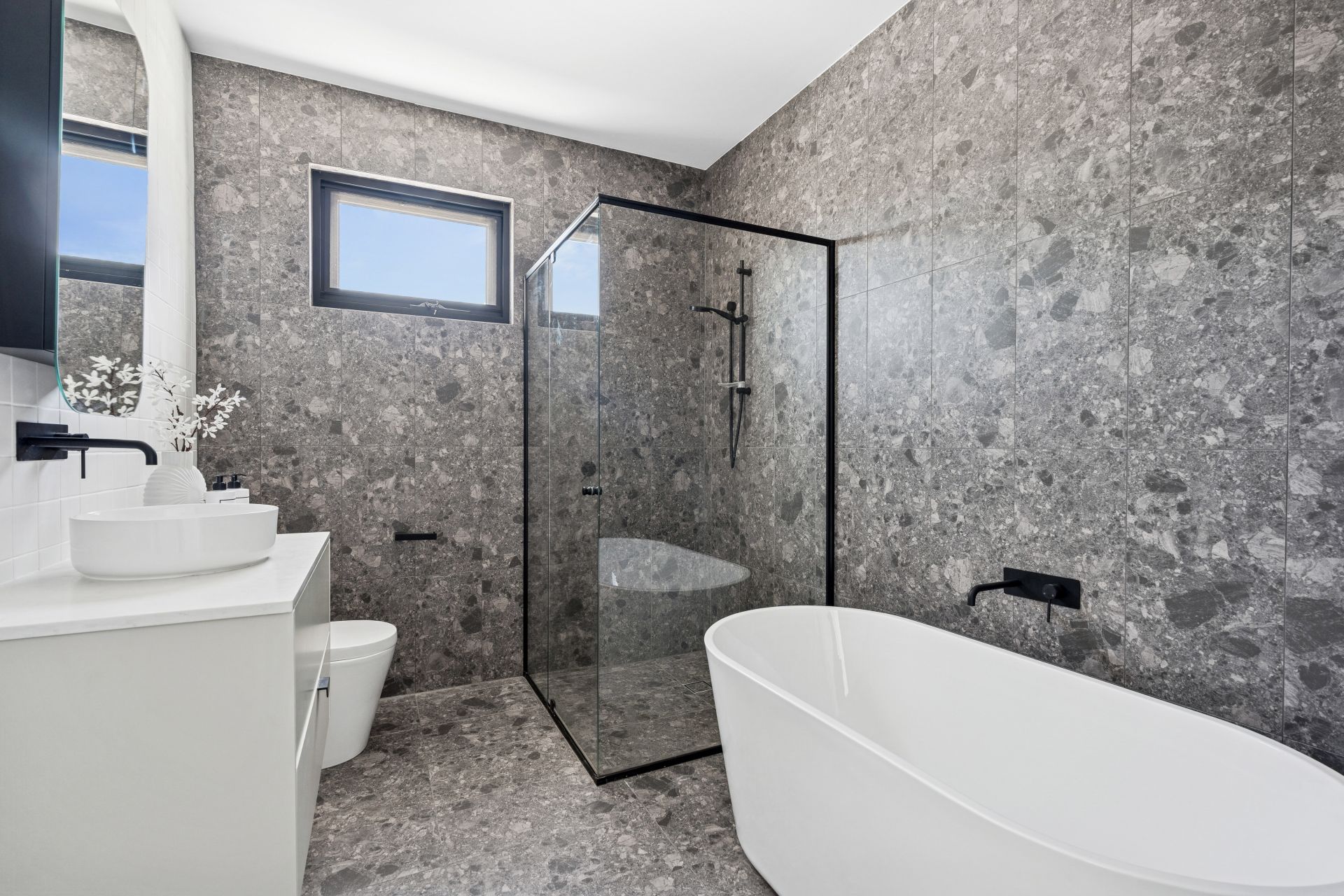 The luxurious master suite is a true retreat, generously proportioned with a large walk-in robe, elegant ensuite and private access to a sunny terrace. Two additional bedrooms with built-in robes are serviced by a deluxe main bathroom complete with a bathtub. Every detail has been considered – from the double-glazed windows and sliding doors to the premium fittings and fixtures that define the home's quality.