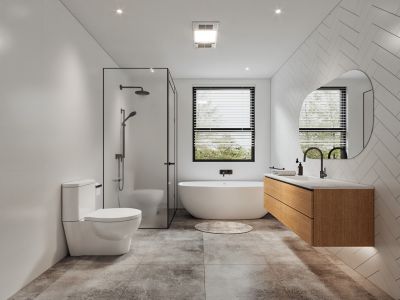 3 luxurious bedrooms including 2 ensuite bathrooms to each master bedroom and a main bathroom. Finished in sparkling full-height tiles including a herringbone feature wall.