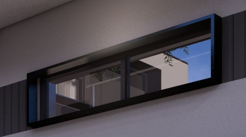 > modern aluminium black box window shrouds