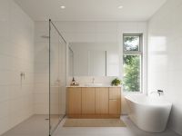 Luxurious main bathroom complete with floor to ceiling tiles, stone bench tops, double size shower and a freestanding bath tub.